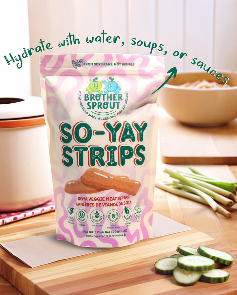 These shelf-stable vegetable proteins will be your new favourite meat alternative for its tastiness and affordability. They're packed with nutrients and flavour, making it easier to eat more veggies, more often! They're made with textured soy protein which is a high-protein meat substitute made from soy flour. Each pack will yield 1.5-2kg of veggie protein when reconstituted, providing excellent value. They are high-protein, naturally rich in fiber, iron, potassium, and calcium! Perfect for burritos, fajitas, stir-fries, stews, noodles, salads, and so much more!