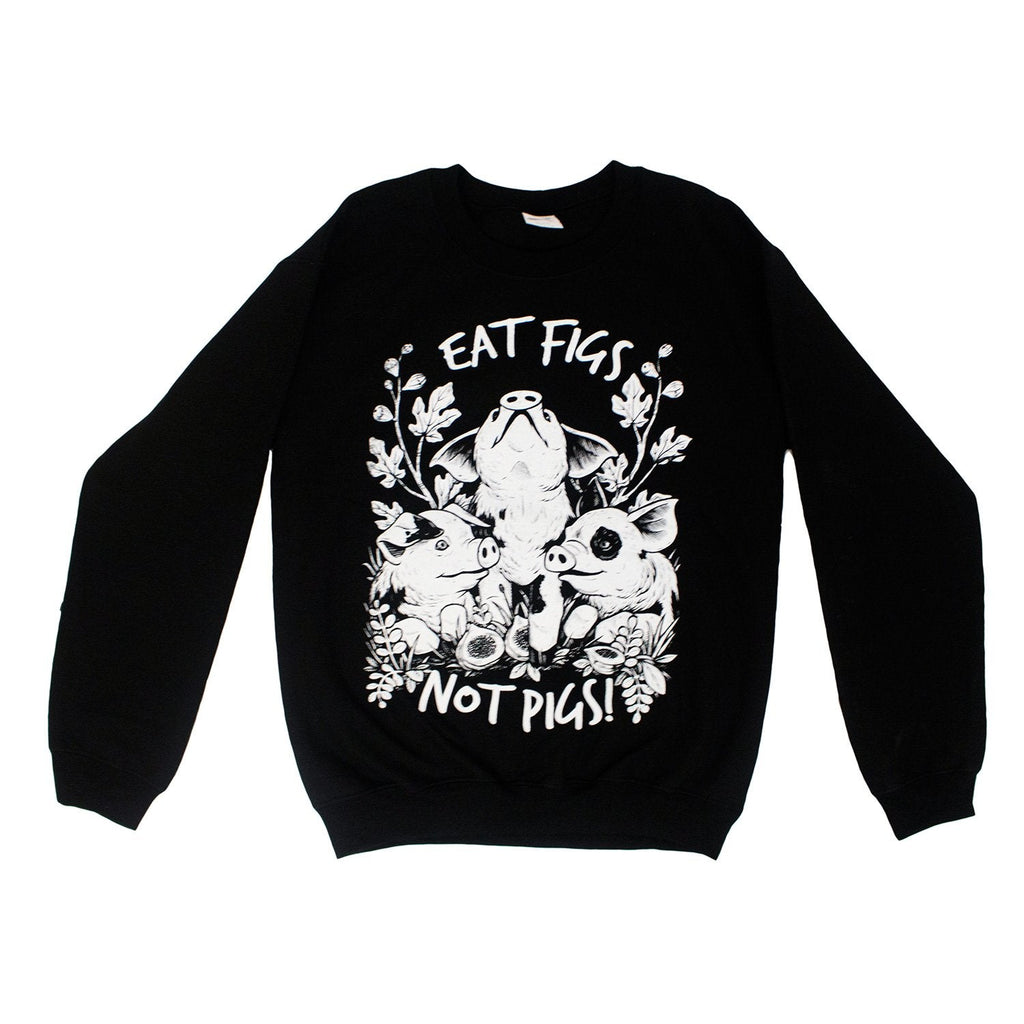 Vegan Veins 'Eat Figs Not Pigs!' Black Unisex Crewneck