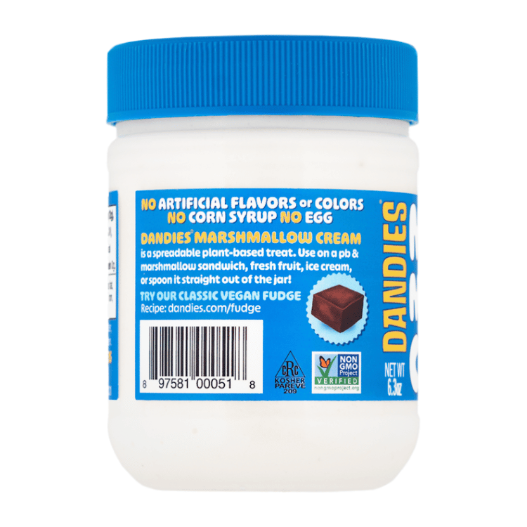 Dandies Vegan Marshmallow Cream is perfectly fluffy and decadently creamy. Swirl it into a classic PB & marshmallow sandwich, dollopit over fresh fruit, use it to add the perfect topping to your ice cream, or spoon it straight out of the jar!