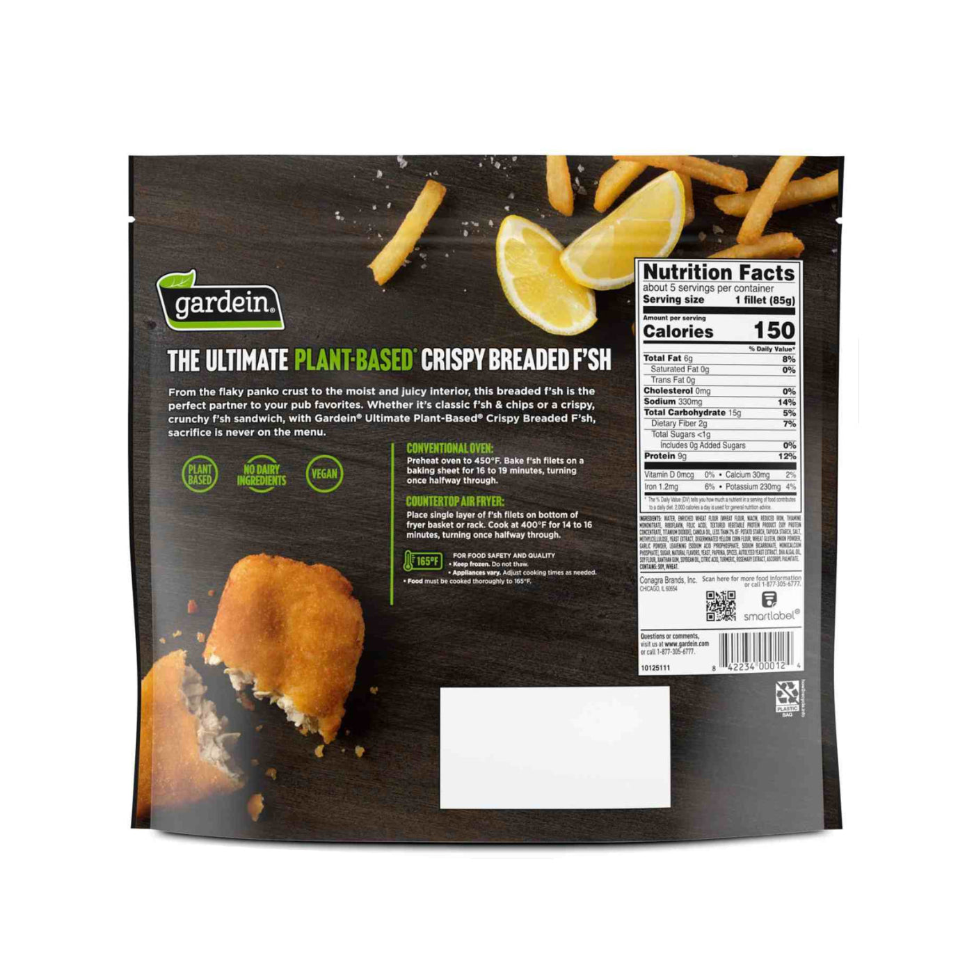 Gardein® Ultimate Plant-Based Crispy Breaded F'sh is the fish alternative that leaves none of the taste behind. These flaky and tender plant-based f'sh filets are perfect for sandwiches or easy entrées and are coated in a crispy panko breading to deliver all the texture and taste of traditional fish filets—while cooking just like them too.
