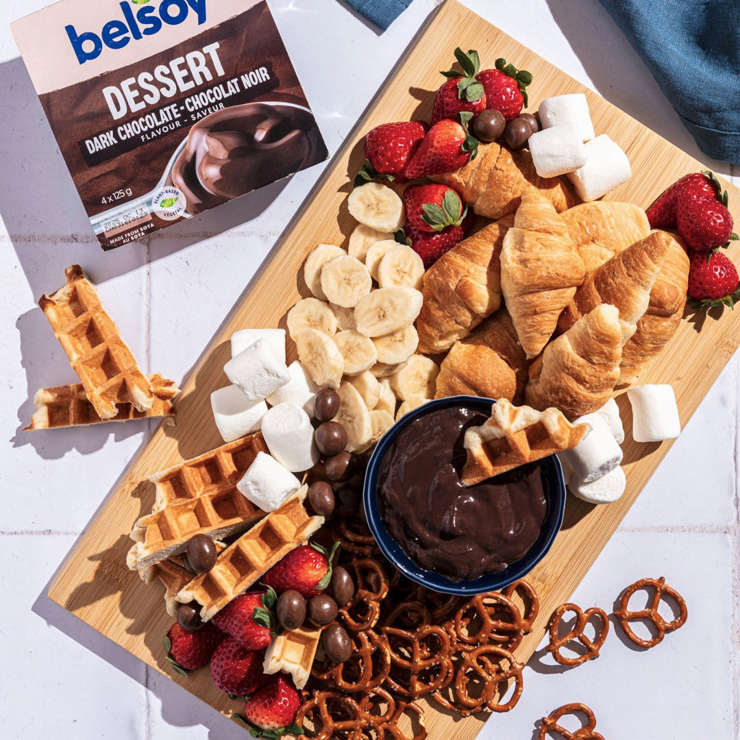 Petit, sombre et beau, le chocolat noir dessert Belsoy associe une onctuosité soyeuse à base de plantes aux pouvoirs de séduction du vrai chocolat noir pour vous séduire. Cette indulgence saine est le régal parfait.Ingrédients : Boisson de soja enrichie (eau, graines de soja décortiquées (6%), phosphate tricalcique, vitamines (riboflavine, B12, D2)), sucre, épaississants (amidon de tapioca modifié, carraghénine), cacao (3%), chocolat ( 1,1%) (sucre, extrait sec de cacao, poudre de cacao maigre, arôme naturel de vanille), arôme, sel marin.