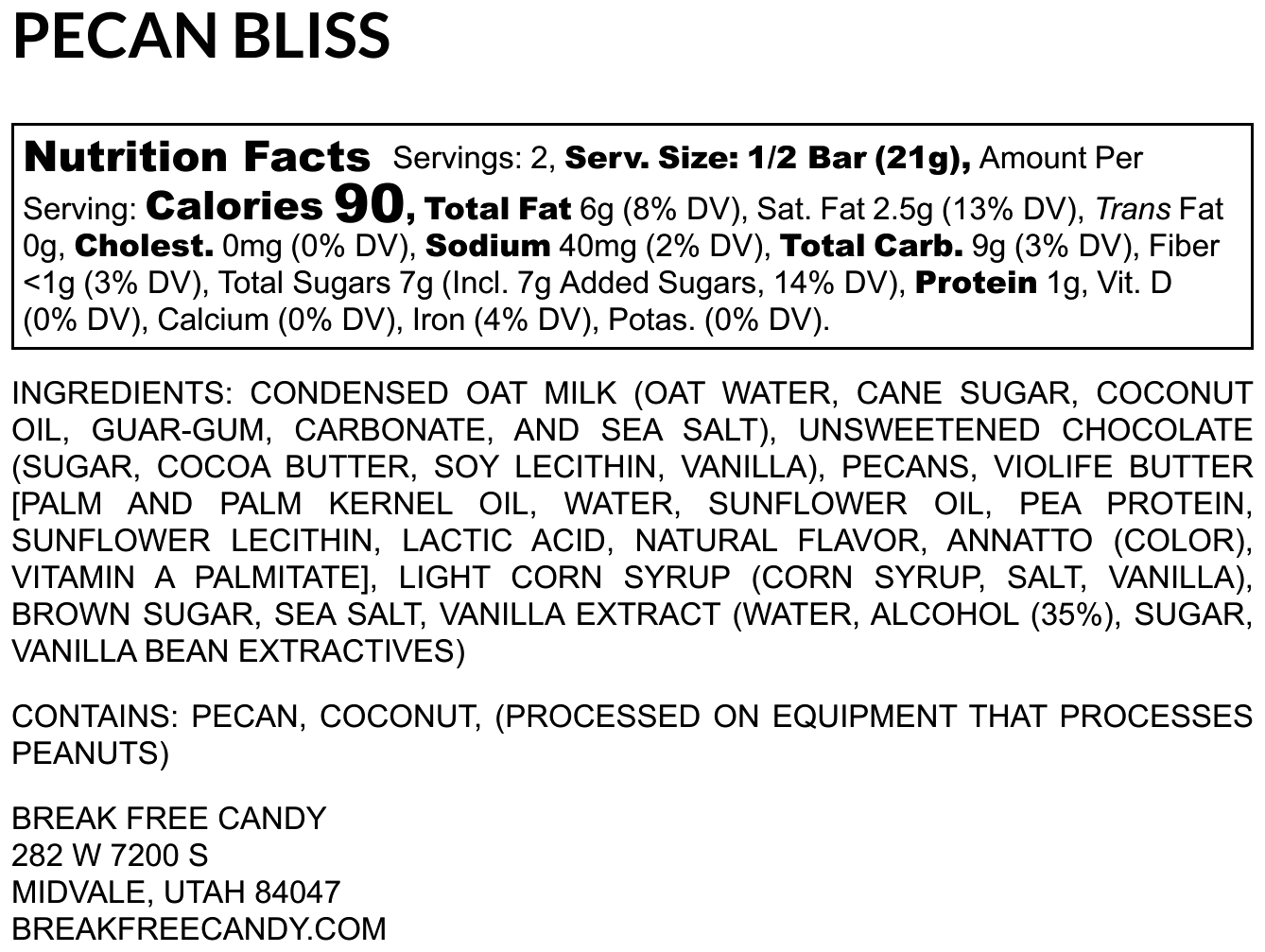 Ingrédients : Sucres (sucre de canne, sirop de riz biologique), amandes, huile de palme, huile de palmiste, eau, poudre de cacao, mélange d'huiles de canola et d'olive, sel, arômes naturels, lécithine de tournesol, bicarbonate de soude, acide lactique, extrait de rocou.