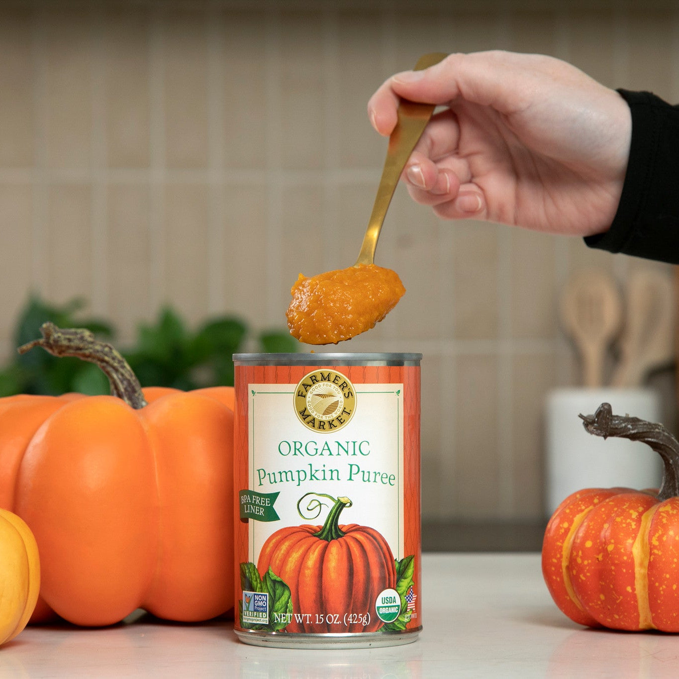 La citrouille biologique Farmer's Market est riche, lisse et délicieuse, ET prête à être utilisée dans tout, des délices cuits au four aux entrées. Utilisez-le dans une variété de recettes, y compris les tartes, les muffins, les biscuits, les soupes... même le chili !Ingrédients : Potiron certifié biologique*.