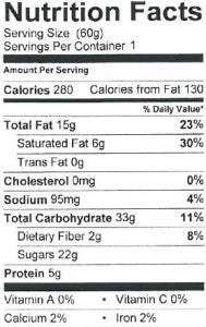 Ingrédients (non OGM) : cacahuètes (grillées à sec), sirop de maïs, sucre de canne, sucre de canne bio non raffiné, huile de palmiste, poudre de cacao (naturel), huile de palme, poudre de riz (poudre de sirop de riz, amidon de riz, farine de riz, carraghénine), concentré de protéines de soja, dextrose, arômes naturels, poudre de malt (extrait de malt d'orge et de maïs), lécithine de soja, sel, carraghénine, protéine de soja modifiée par une enzyme.
