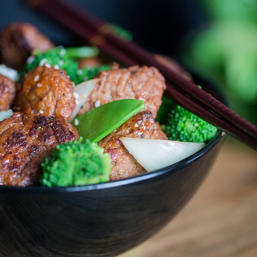 This plant-based beef alternative features a delectable flavour and texture that has been known to fool discerning foodies. Lightly seasoned, these bite size peppered steaks are ready to be added to any of your favourite dishes.