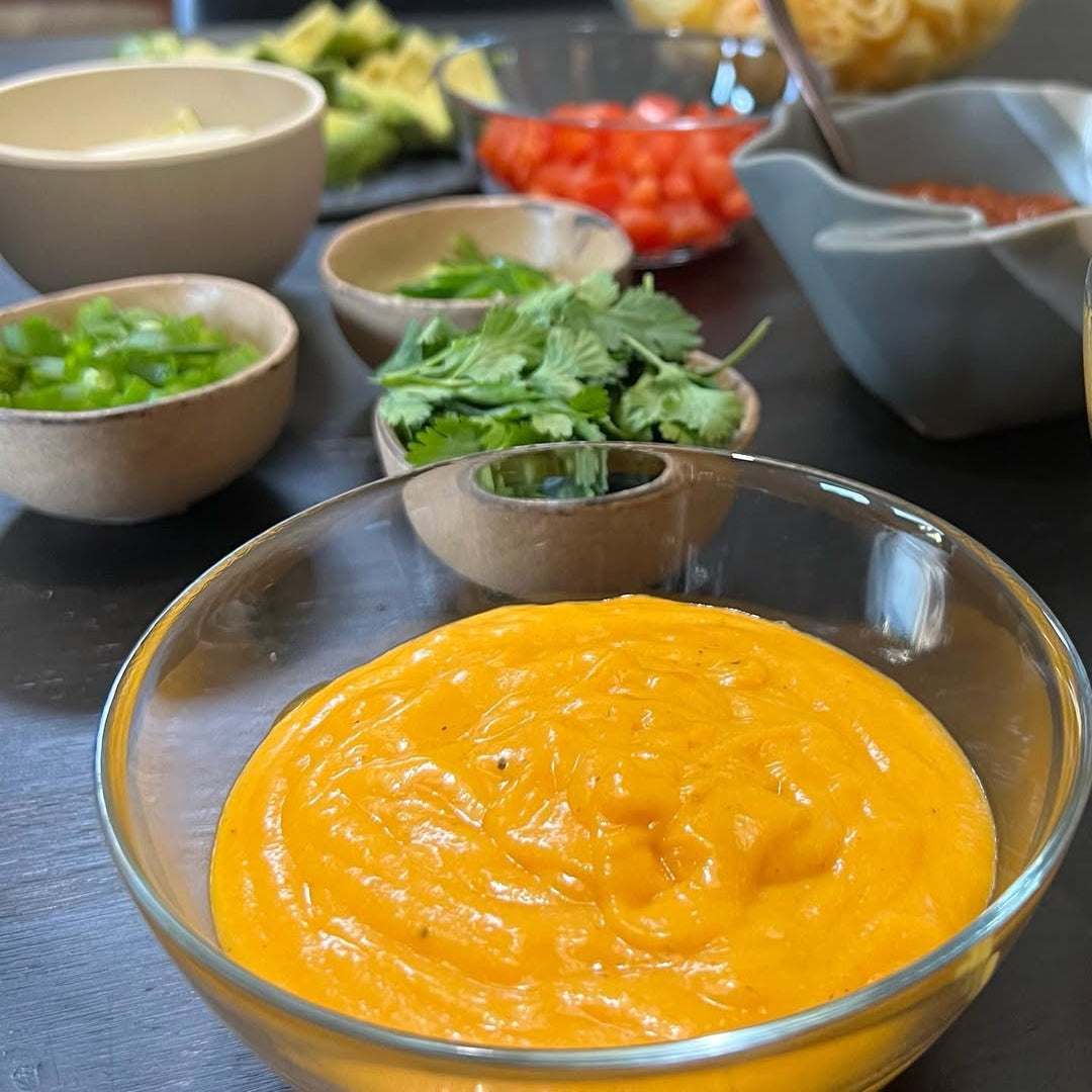 Tastes just like queso. Perfect for nachos, tacos, quesadillas, crackers, grilled cheese and mac + cheese. Best served warm.