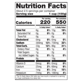 Ingrédients : Ricotta au lait d'amande (lait d'amande [eau, amandes], sel, enzymes, acide tartrique, cultures), courge musquée, chapelure (farine de blé, sucre, levure, sel), flocons de pomme de terre, huile de canola, sel de mer, poivre noir , sauge, huile de rocou. Pâtes : farine de blé, eau, bêta-carotène.