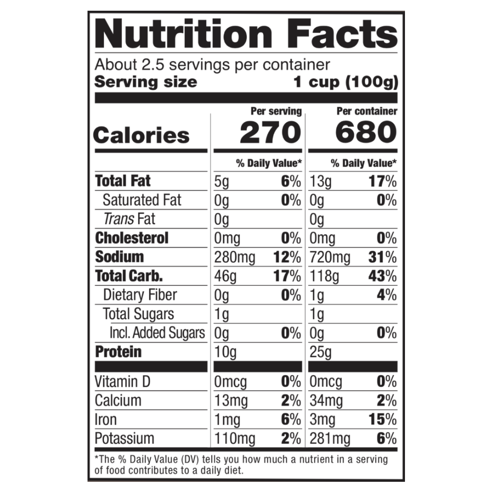 Ingrédients : GARNITURE : Ricotta au lait d'amande (lait d'amande [eau, amandes], sel, enzyme, acide tartrique, cultures), chapelure (farine de blé, sucre, levure, sel), pommes de terre réhydratées (pommes de terre, eau), sel de mer, sel noir Poivre, Persil.