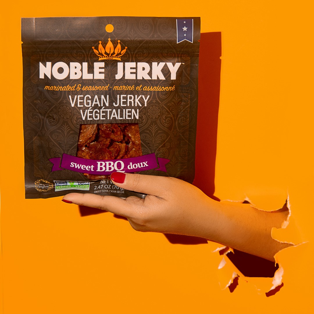 Viande séchée végétalienne au barbecue marinée et assaisonnée de qualité supérieure. Protéine végétalienne à base de plantes avec un vrai goût et une texture saccadée.