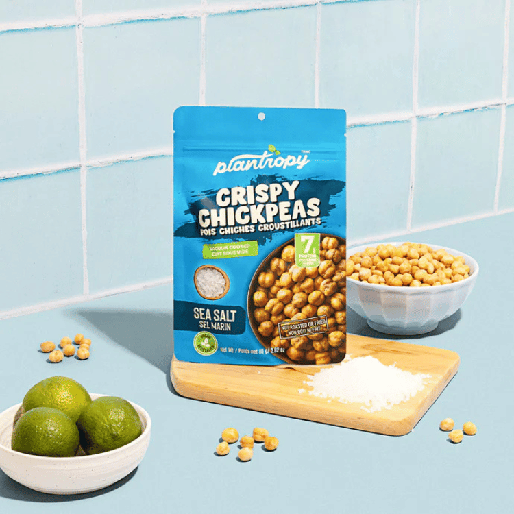 Simple, crunchy, and irresistibly satisfying—Plantropy's Crispy Chickpeas with Sea Salt are vacuum cooked perfectly seasoned for a clean, classic flavor. Packed with plant-based protein and fiber for guilt-free snacking anytime.