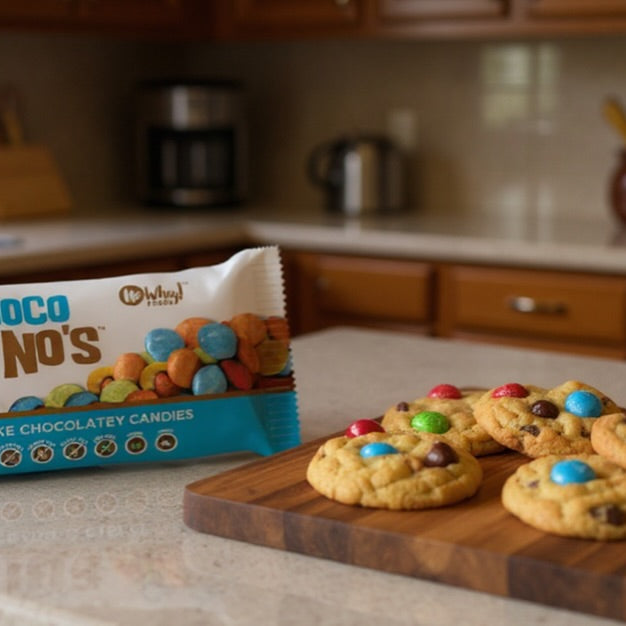 Égayez l'heure des bonbons avec une poignée de Chocolate No No's végétaliens colorés. Les chocolats aux couleurs de l'arc-en-ciel sont le substitut parfait des M&M's traditionnels avec un enrobage de bonbons croquants autour d'un intérieur en chocolat sans lait. Bien sûr, vous pouvez grignoter heureux en sachant que votre friandise est végétalienne, entièrement naturelle et conçue pour être sans lait, sans noix, sans gluten, sans blé !