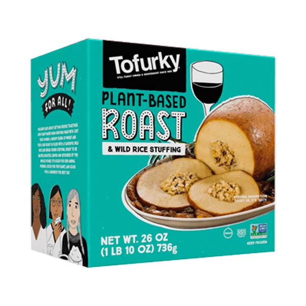 Tofurky Roast est fier d'être votre plat principal sans viande. Un savoureux mélange de blé et de tofu, le rôti est rempli d'une farce savoureuse de riz sauvage et de chapelure, prêt à être badigeonné, rôti, découpé et dévoré par toute la bande.