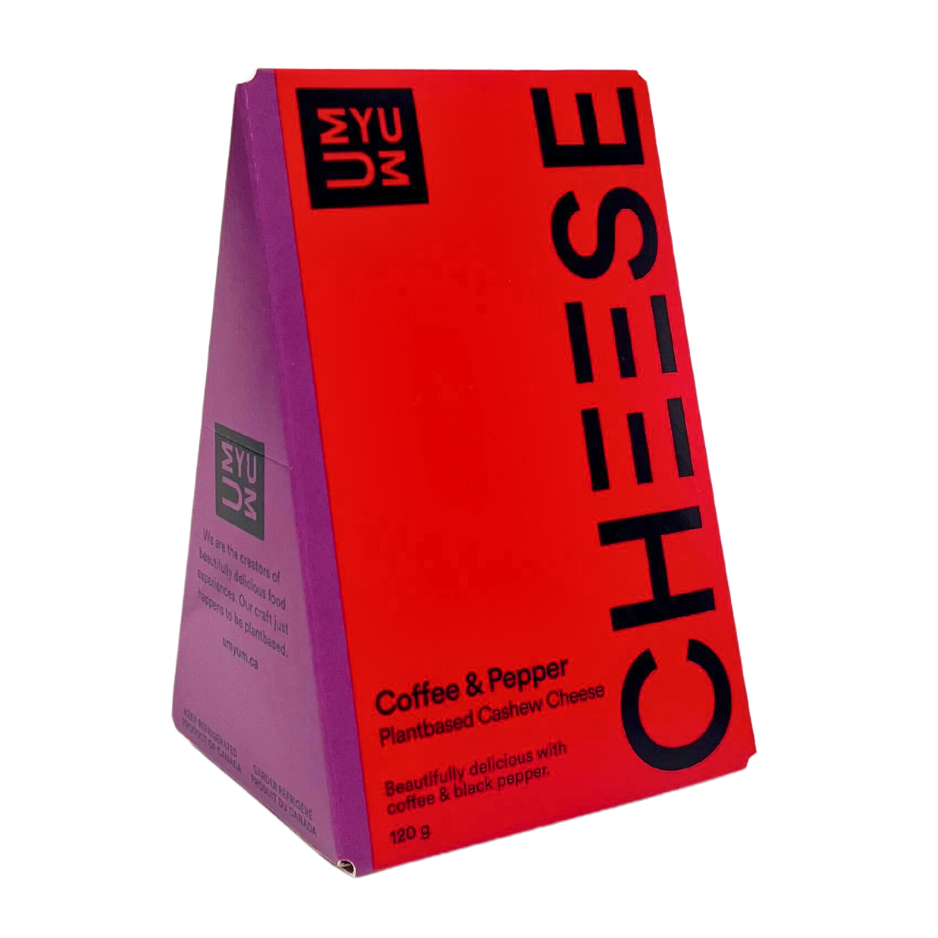 BC based UmYum has the perfect cheese to add to your next charcuterie board or snack plate! Rich coffee and the bite of black pepper create the perfect compliment to a soft, creamy cashew base. Calling all unique flavour lovers!