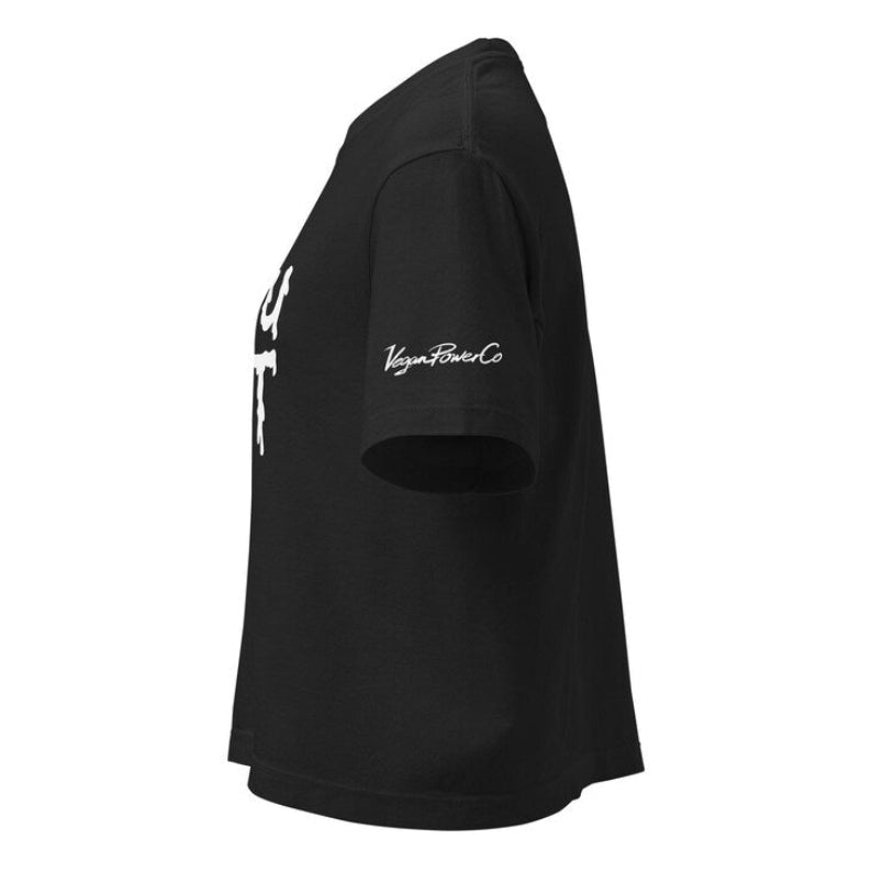 La nouvelle chemise de Vegan Power Co est un t-shirt court inspiré des années 70/80 avec un message pour les végétaliens éthiques : Pour les animaux.