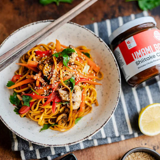 Apportez une saveur audacieuse, savoureuse et épicée à n'importe quel plat !Umami Bomb est une huile de piment shiitake végétalien unique en son genre qui ajoute une saveur umami profonde et riche à n'importe quel plat. Utilisez-le sur n'importe quoi, des nouilles et du riz aux légumes, sandwichs et wraps. Utilisez-le comme trempette ou ajoutez-le à n'importe quoi pour ajouter une bombe de saveur umami !