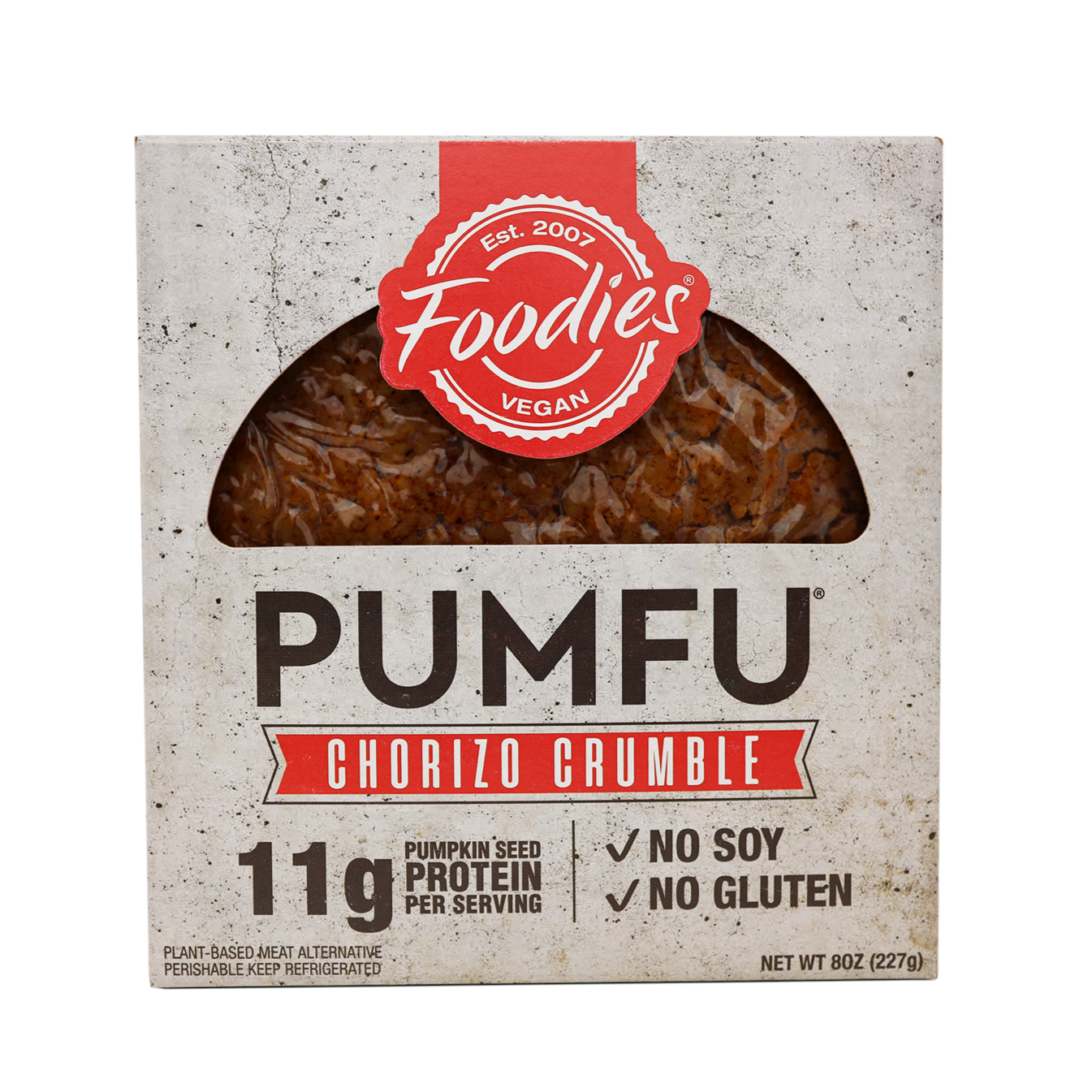 Ground Pumfu mildly seasoned with the traditional flavours of Mexican Chorizo. Perfect for nachos, burritos, tacos, bowls, and so much more! Super convenient and easy to prepare. It can be heated in the microwave, on the stove top or in the oven.
