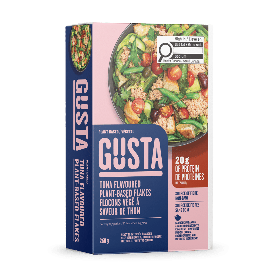 Do your part to protect ocean fish with this innovation! Gusta's fish free tuna is made with white beans and soy, letting you add some freshness to your meal while meeting your nutritional goals. This alternative to tuna contains 18g of protein per portion!