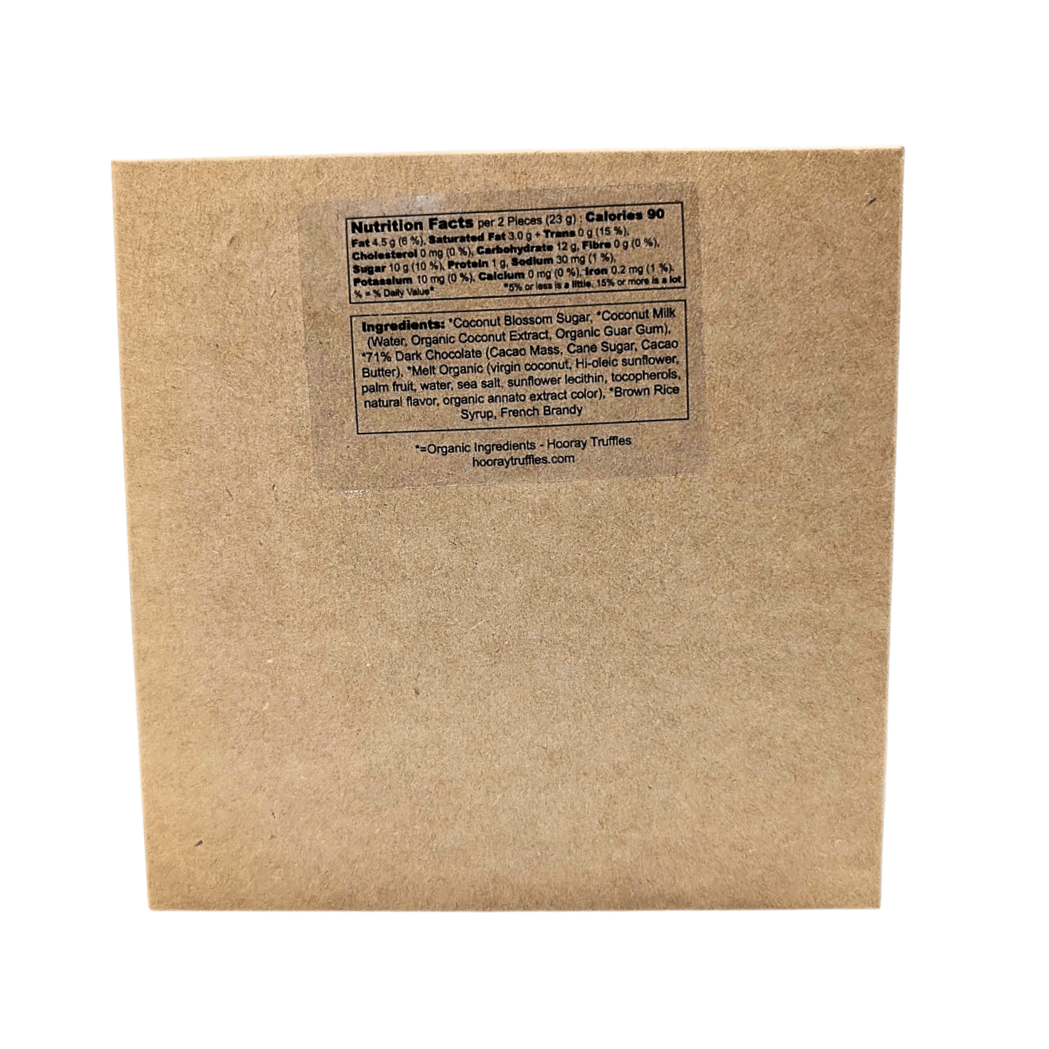 Made with organic ingredients: coconut milk, coconut blossom sugar, rice syrup, *melt organic, and a splash of french brandy.