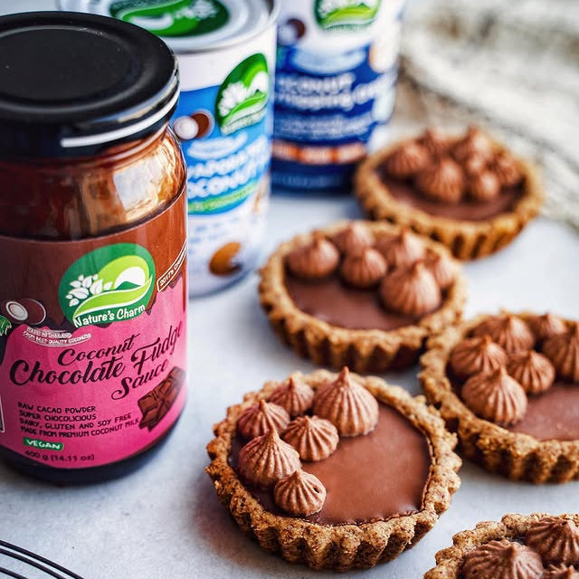 Indulge in the exquisite flavors of Nature's Charm Vegan Coconut Chocolate Fudge Sauce - a rich, dairy-free delight perfect for coconut and chocolate enthusiasts! This luxurious sauce transforms ordinary desserts into extraordinary treats. Drizzle it over ice cream, pancakes, and desserts for a decadent topping, or mix it into your favorite beverage to create a luscious chocolate drink.