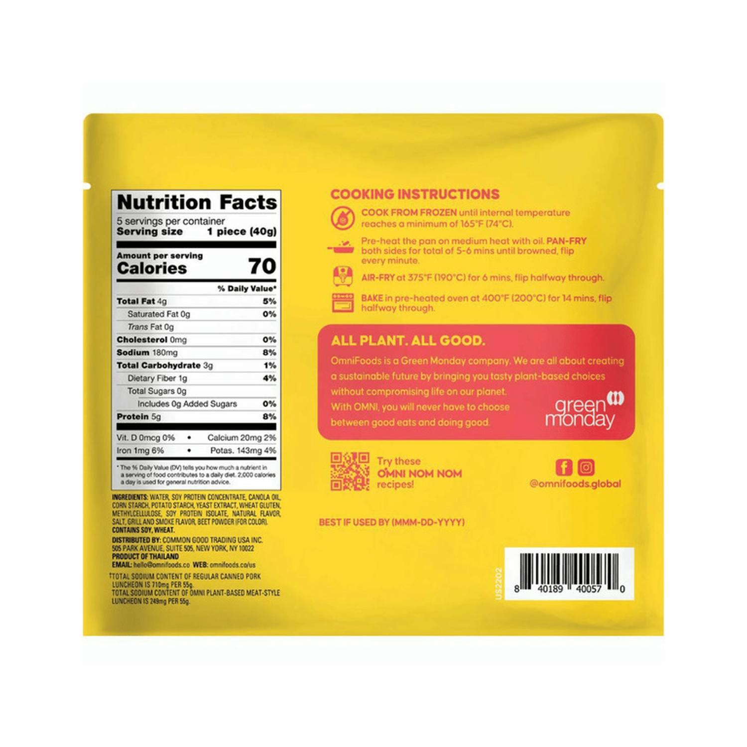Omni Luncheon, launched by OmniFoods, contains 0mg cholesterol, is rich in protein and provides dietary fiber, potassium and calcium. It is also cruelty-free, non-GMO and buddhist-friendly, without added hormones, antibiotics or MSG. More importantly, OmniPork Luncheon does not use any carcinogenic nitrate as the preservatives.