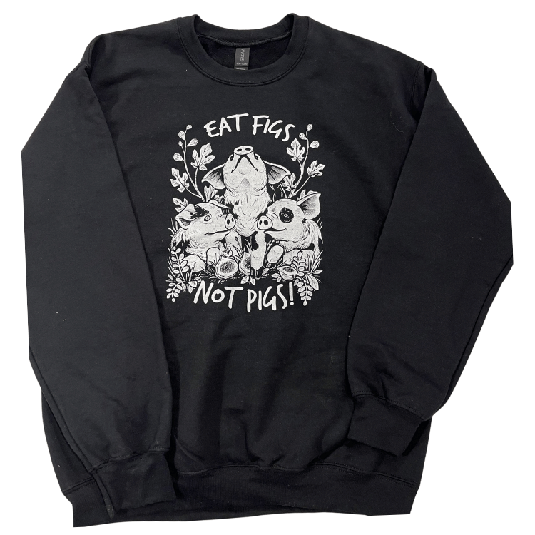 Vegan Veins 'Eat Figs Not Pigs!' Black Unisex Crewneck